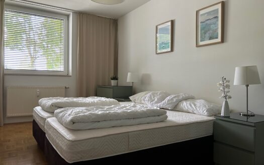 Die 2 komfortablen Zimmer (eines davon mit einem franz. Balkon) sind alle direkt über den Vorraum begehbar – daher ist die Wohnung durchaus WG geeignet. Alle Fenster mit Rollo, teilw. LED Beleuchtung uvm.
