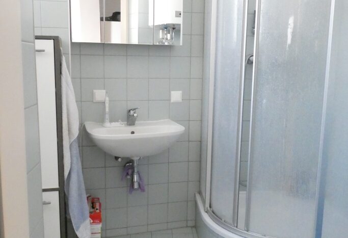 Über den Vorraum gelangen Sie in das Badzimmer mit Dusche/WC u. Fenster. Die modern eingerichtete Küche bietet auch Platz für einen kleinen Esstisch und verfügt über einen direkten Zugang zum ruhigen Eckbalkon mit Blick in den ruhigen Innenhof. Der Wohn/Schlafraum kann durch seine durchdachte Planung perfekt eingerichtet werden.